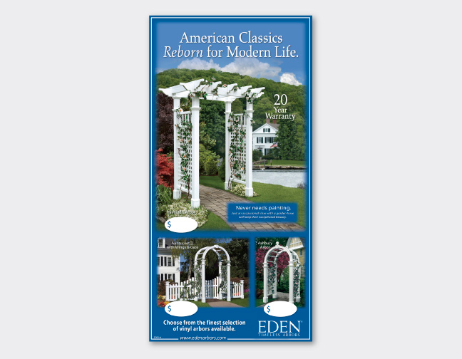 To put it really simply, the people at Eden are garden decor enthusiasts at heart. That's what they do. They design, make, sell and promote the most attractive and durable vinyl garden decor products imaginable. Original photography by Paul Sorenson.