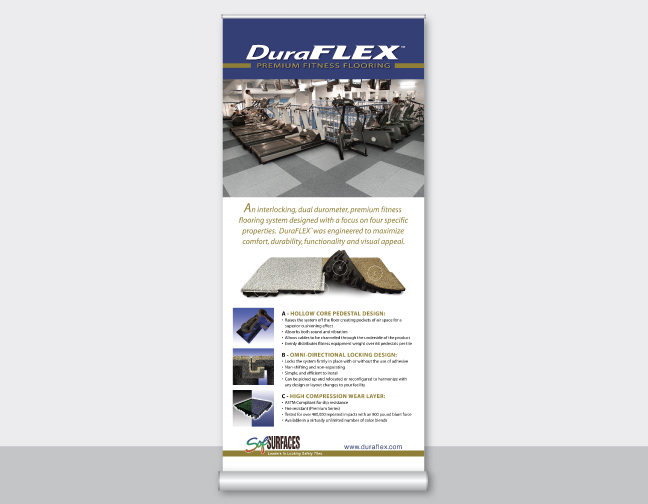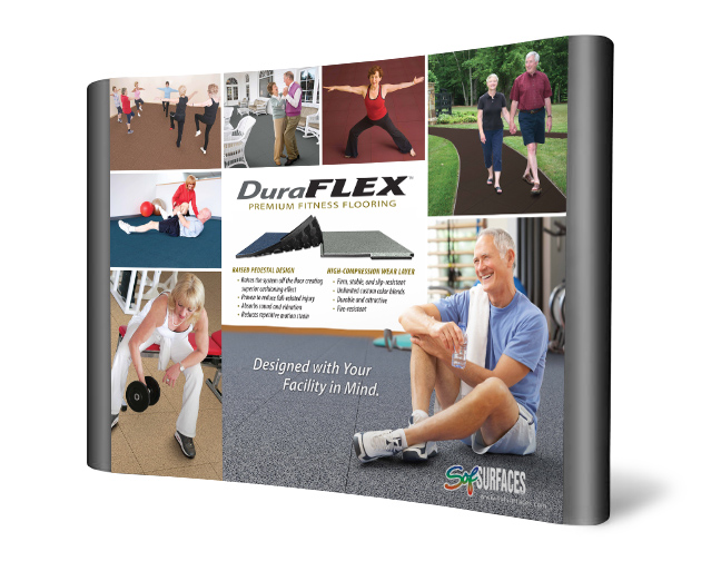 DuraFLEX is an interlocking, dual durometer, premium fitness flooring system designed and engineered with a focus on four specific properties; maximize comfort with it’s hollow-core technology, durability, functionality and visual appeal.