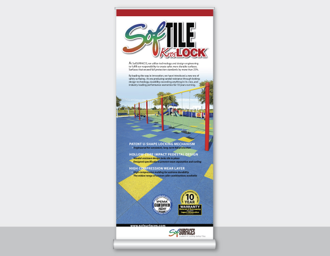 SofSURFACES is the leader in playground surfaces with their KrosLOCK and DuraSAFE recycled rubber tiles, exceeding ASTM playground safety standards for fall protection. Other SofSURFACES products include SofTILE AP (Architectural Pavers), as well as DuraFLEX Premium Fitness Flooring.