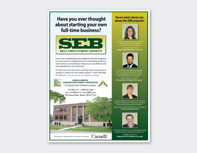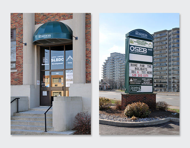 SLBDC is a not-for-profit agency funded by The Federal Economic Development Agency for Southern Ontario, providing business counselling, including assistance in developing a business plan, and financing to entrepreneurs in Lambton County. Sign fabrication & installation by GeoPlast Signs.