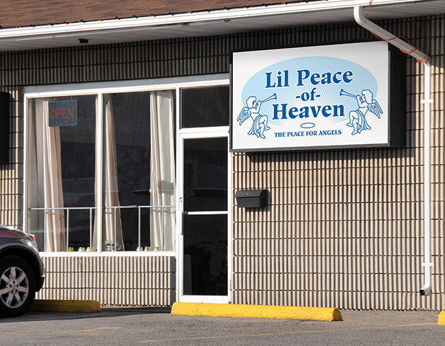 Lil Peace of Heaven is a gift boutique, with an inventory that is primarily of an angelic theme where you will find Angel Jewelry, Gifts, Books, Music, Videos, Byzantine-style Icons, Wall Reliefs, Pendants, Prints, Notecards, Ceramics, Sculpture, and more. Sign fabrication & installation by GeoPlast Signs.